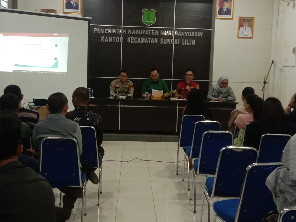 Kliksumatera.com, SEKAYU- Tim terpadu Pemerintah Kabupaten Musi Banyuasin (Muba) Provinsi Sumatra Selatan Kamis (10/7/2025) menggelar sosialisasi secara berkesinambungan tentang Kafe, Karaoke, dan Hiburan Malam di Aula Kecamatan Sungai Lilin. Disampaikan oleh Ibu Yunita didampingi jarajarannya Waka Polsek Sungai Lilin, Plt. Camat Sungai Lilin, Plt Lurah Sungai Lilin Jaya, dan Plt Sekcam Sungai Lilin.
