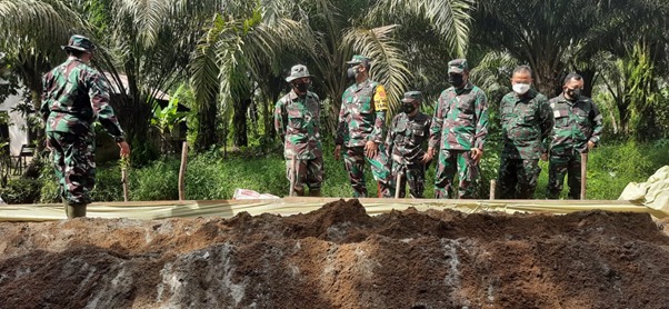 Kubu Raya – Tim wasev kunjungi lokasi TMMD ke-111 Kodim 1207/Pontianak di Dusun Maju Jaya, Desa Kuala Mandor B, Kecamatan Kuala Mandor B, Kabupaten Kubu Raya. Disinilah lokasi TMMD berlangsung, dengan sasaran fisik pembuatan jalan rabat beton sepanjang 1.100 meter yang dikerjakan satgas TMMD dan masyarakat setempat, Jumat (09/07/2021).