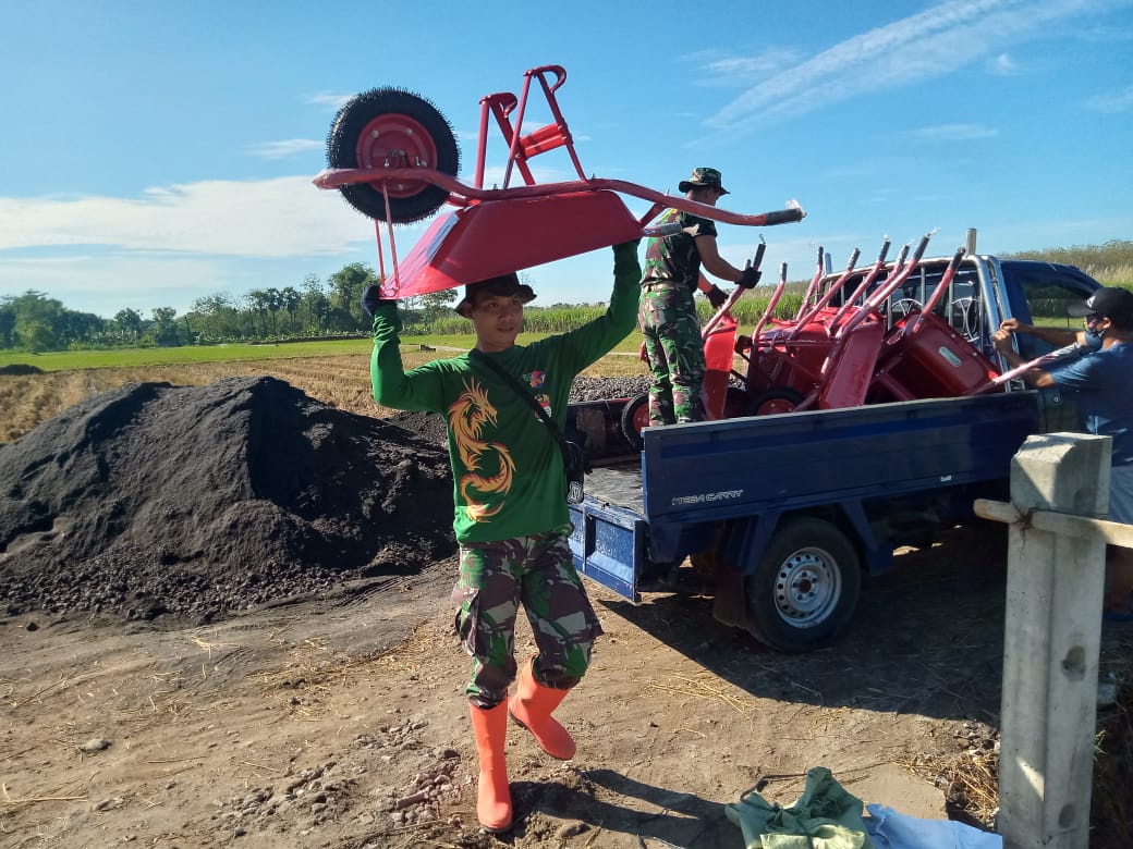 Sepuluh angkong baru didatangkan khusus oleh panitia TMMD desa Tamansari yang dipindahkan dari sebuah mobil pick up oleh anggota satgas.Kamis,(17/06/2021).