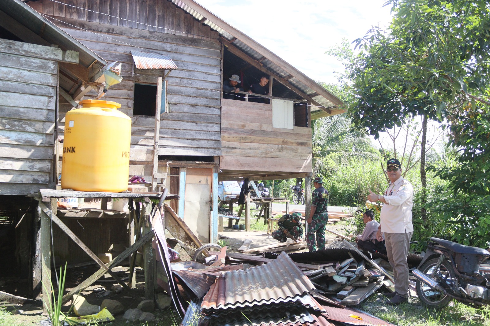 MALINAU – Kepala Desa Tanjung Lapang, Yusia Yusuf, SE.MM., meninjau langsung lokasi pembangunan Rumah Tidak Layak Huni (RTLH) yang menjadi salah satu sasaran fisik dalam program TNI Manunggal Membangun Desa (TMMD) ke-125 Wilayah Perbatasan (Wiltas) Kodim 0910/Malinau, Selasa (29/7/2025).