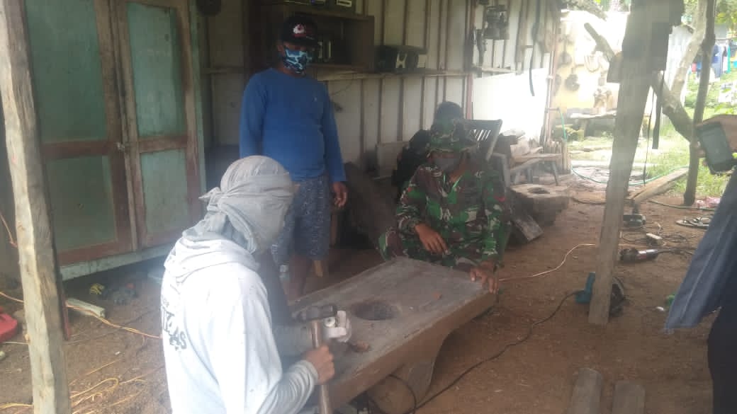 Bojonegoro – Kopda Anang selaku tim satgas TMMD ke-110 Kodim 0813/Bojonegoro berkunjung ke rumah Bapak Sareh di Dusun Kramanan Rt.011/Rw.006, Desa Jatimulyo, Kecamatan Tambakrejo, Kabupaten Bojonegoro. Beliau memiliki usaha dibidang kerajinan barang-barang tua maupun bekas untuk bisa diperbaiki dan diperjual-belikan kembali, Minggu (28/2/2021).