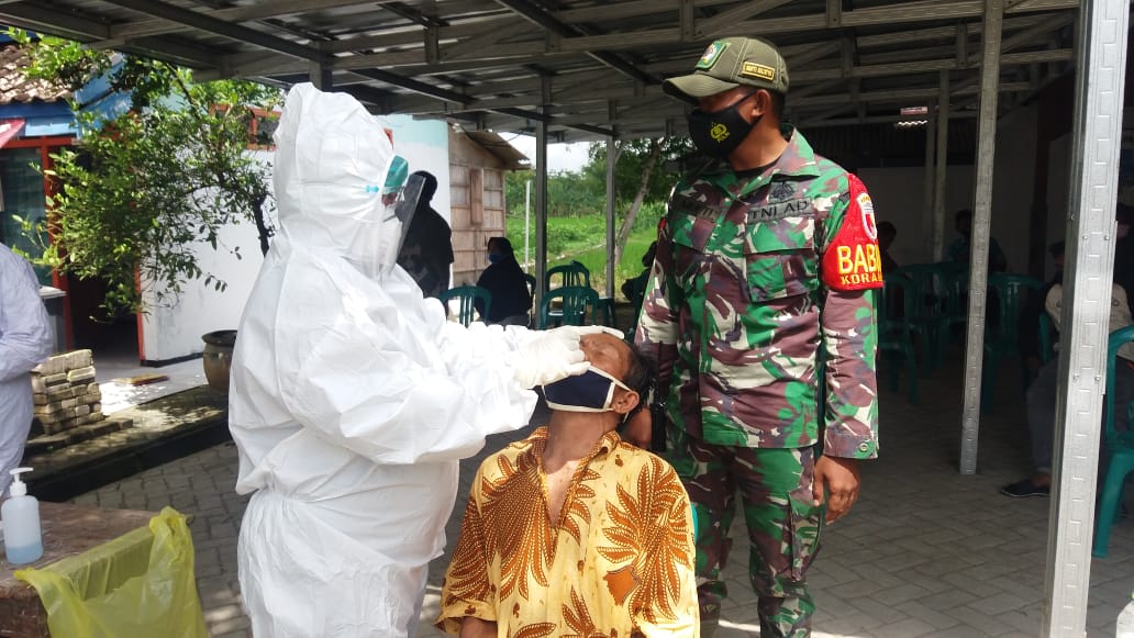 Meskipun begitu, Babinsa Koramil 14/Tambakrejo, Koptu Mufti, dan para anggota satgas TNI Manunggal Membangun Desa (TMMD) terus mendampingi para warga yang sedang melakukan Rapid Tes.