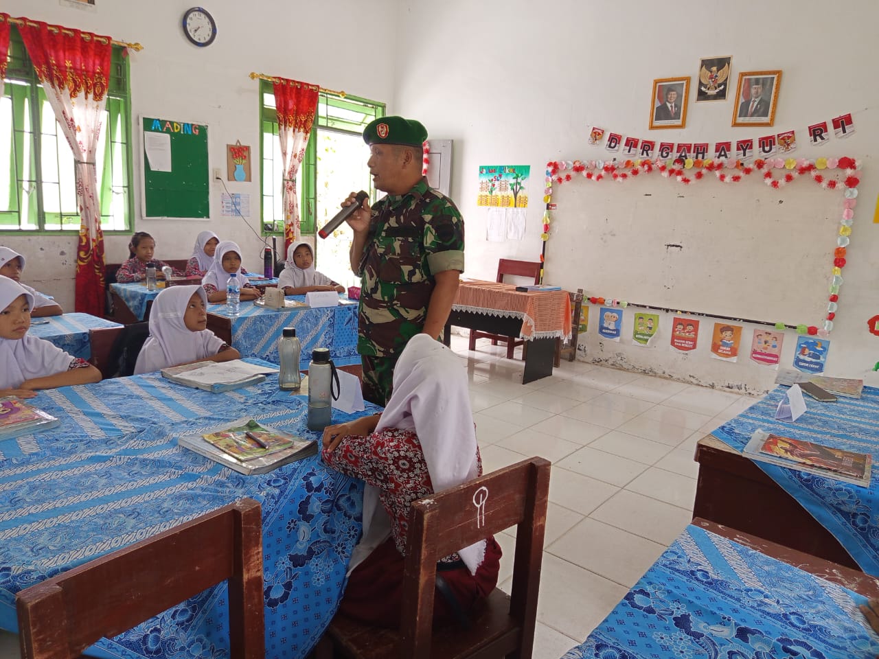 Kegiatan ini bertujuan menanamkan nilai-nilai kebangsaan, cinta tanah air, dan semangat bela negara sejak dini kepada para pelajar. Di dalam kelas yang dipenuhi siswa-siswi, Sertu Gurning memberikan materi dengan gaya komunikasi yang santai namun berwibawa, memotivasi para siswa untuk menjadi generasi penerus bangsa yang berkualitas dan berkarakter.