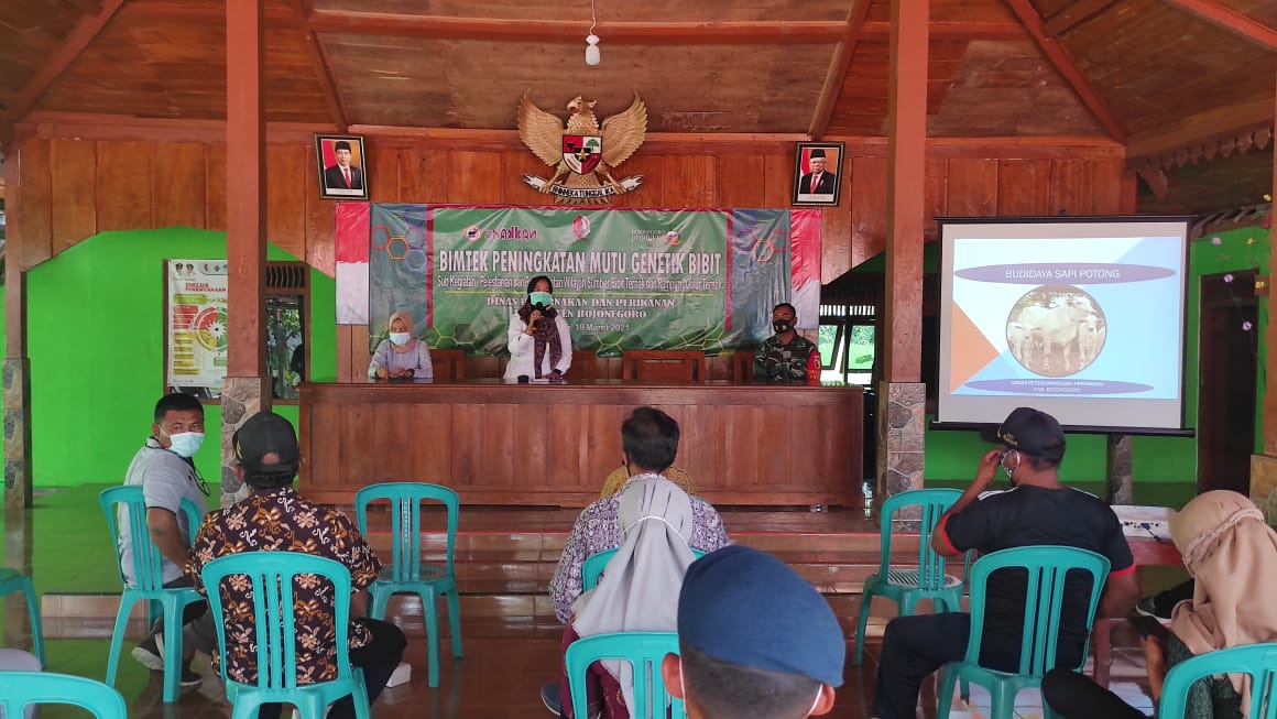 BOJONEGORO – Dinas Peternakan dan perikanan Kabupaten Bojonegoro bersama Kodim 0813/Bojonegoro menggelar Bimbingan Teknis (Bimtek) Peningkatan dan Mutu Genetika Bibit di lokasi kegiatan TMMD 110 di Balai desa Jatimulyo Kecamatan Tambakrejo Kabupaten Bojonegoro. Jum’at (19/03/2021).