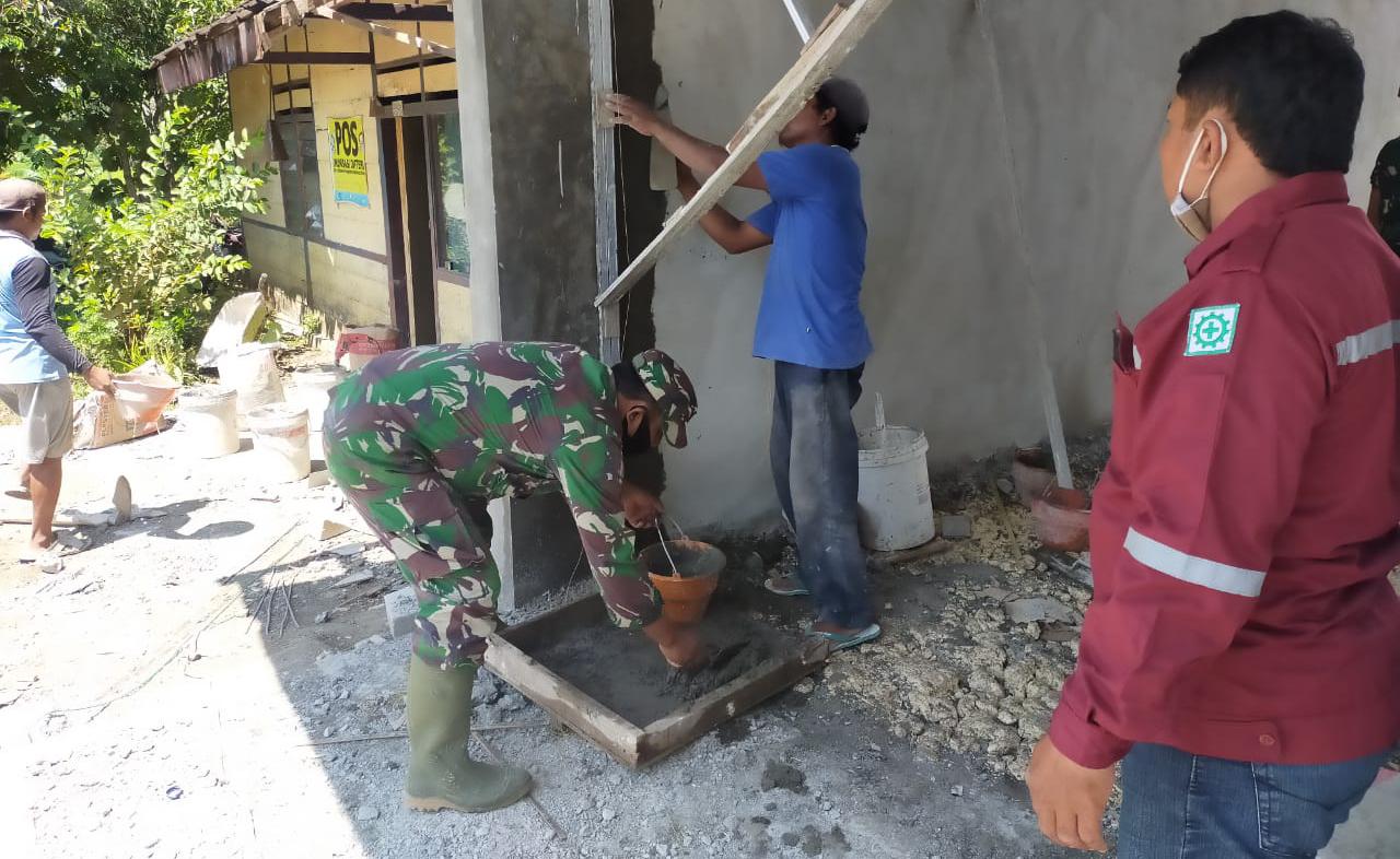 “Kita masih terus membantu Pak Tukang plester dinding,” jelas Satgas TMMD Bojonegoro ini, Rabu (17/3/2021)