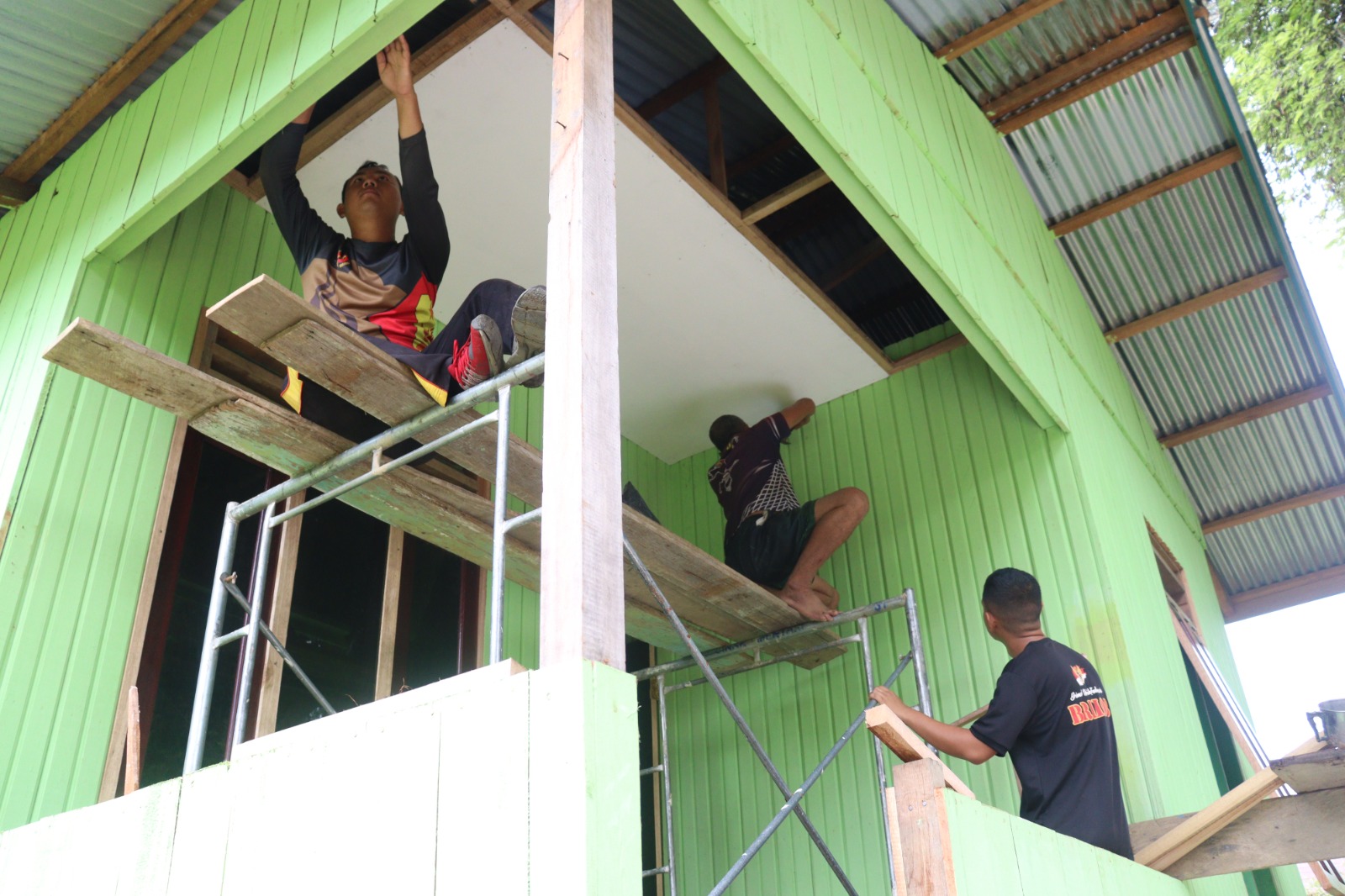 MALINAU, Satgas TNI Manunggal Membangun Desa (TMMD) ke-125 Tahun 2025 Wilayah Perbatasan (Wiltas) Kodim 0910/Malinau terus menunjukkan komitmennya dalam mewujudkan hunian layak bagi warga Desa Tanjung Lapang. Hari ini, personel satgas bersama warga bergotong royong memasang plafon pada salah satu Rumah Tidak Layak Huni (RTLH) yang sedang direnovasi, bertempat di Rumah ibu julianten RT.13, Desa Tanjung Lapang, Kecamatan Malinau Barat, Kabupaten Malinau, Senin (11/8/2025).