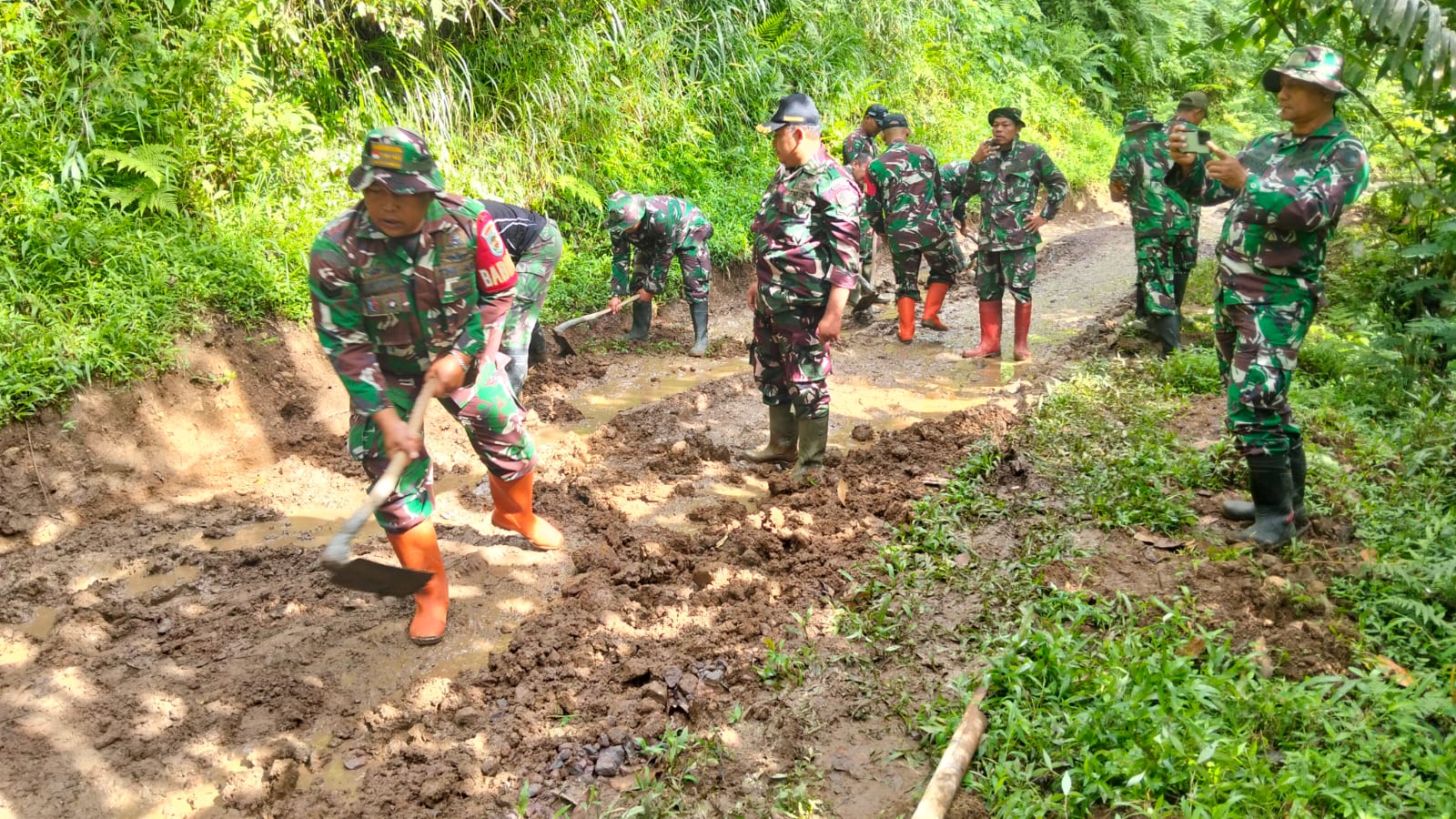 Cipelah, Kab. Bandung – Semangat gotong royong dan kerja keras terus membara di Kampung Babakan Simpang Gunung Leutik, Desa Cipelah, Kecamatan Rancabali, Kabupaten Bandung. Pada hari Senin, 16 Februari 2026, anggota Satgas TMMD Reguler Ke-127 yang dipimpin oleh Danramil 2424/Ciwidey Kapten Inf Supriadi bersama masyarakat Desa Cipelah kembali melaksanakan perataan dan pemasangan begisting untuk pengecoran jalan.