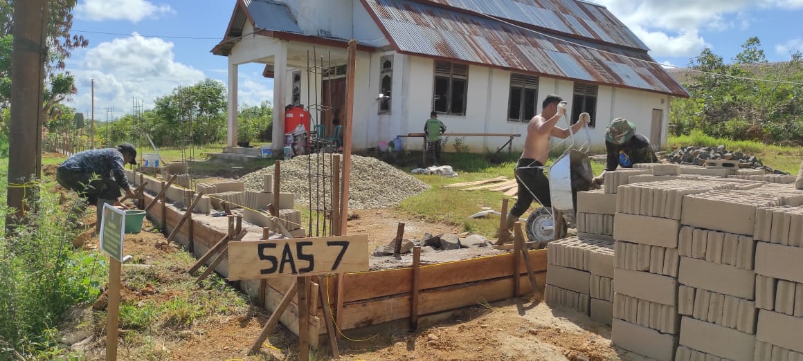 “Saat ini pengerjaan pagar gereja itu sudah masuk tahap Pemasangan Bata pagar. Dan sudah nampak hasilnya,” kata Serda Sapriadi.