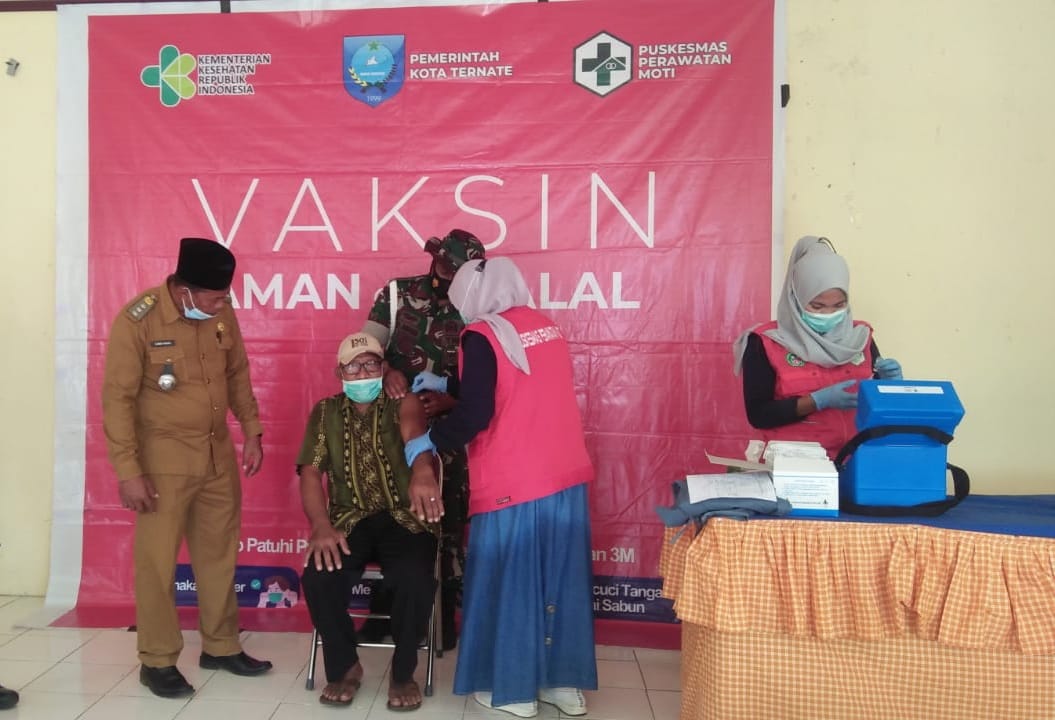 Serbuan Vaksinasi dilaksanakan Kerjasama antara Pemerintah Kota Ternate Dinas kesehatan, dan Kodim 1501/Ternate di wilayah Kecamatan Moti yang mana di wilayah ini juga sedang dilaksanakannya TMMD Reguler ke-111. Selasa(29/06/2021)