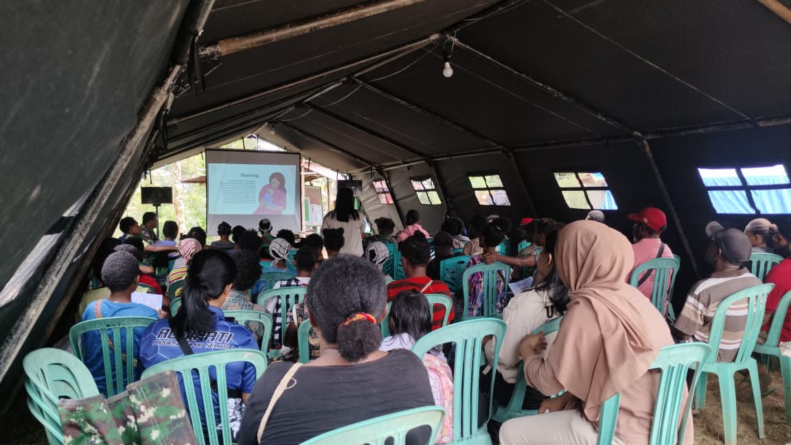 Boven Digoel – Dalam upaya mendukung program pemerintah dalam upaya penurunan angka stunting, Satgas TMMD Ke-126 Kodim 1711/BVD melaksanakan kegiatan sosialisasi stunting kepada masyarakat Kampung Waropko Distrik Waropko Kab. Boven Digoel, Jumat (10/10/2025).