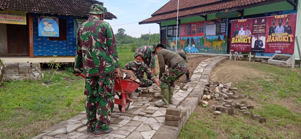 Bojonegoro – Paving bekas pembongkaran jalan yang mendapat program pembangunan TNI Manunggal Membangun Desa (TMMD) 110 Kodim 0813/Bojonegoro dimanfaatkan untuk pembangunan yang lain.
