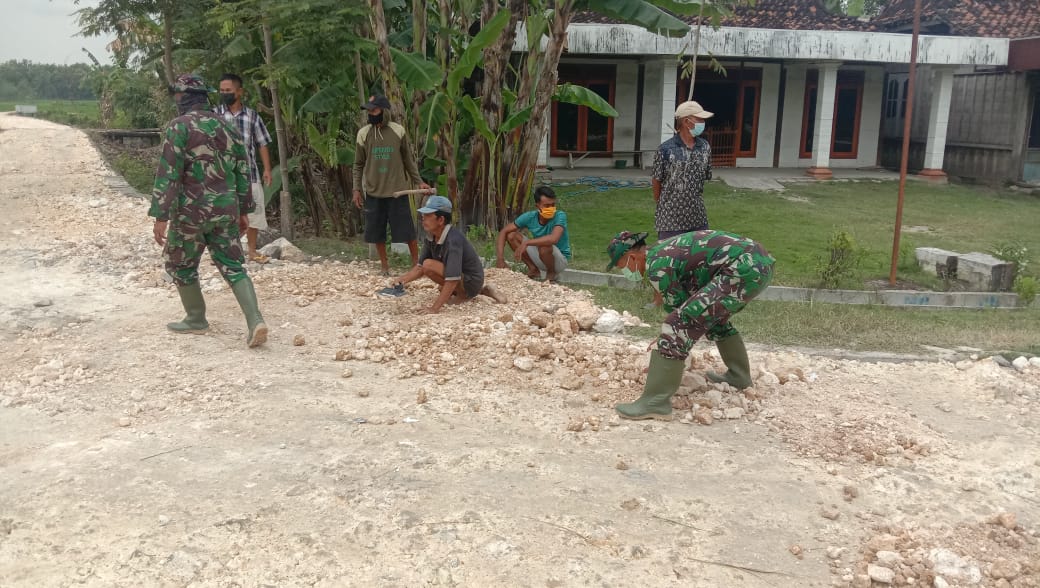 Bahkan para Satgas TMMD ini juga harus melibatkan Satgas Kowad untuk membantu pelaksanaan pengurukan jalan dan juga pemerataan batu untuk dasar jalan yang akan diaspal.