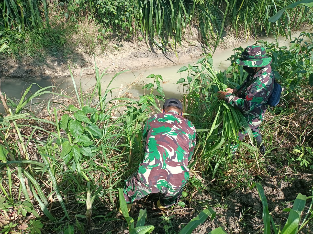 Di Desa Ngrancang sendiri, saat ini tengah berlangsung program Normalisasi kali. Para personel TMMD pun turut mengawasi program tersebut, Rabu (10/03/2021).
