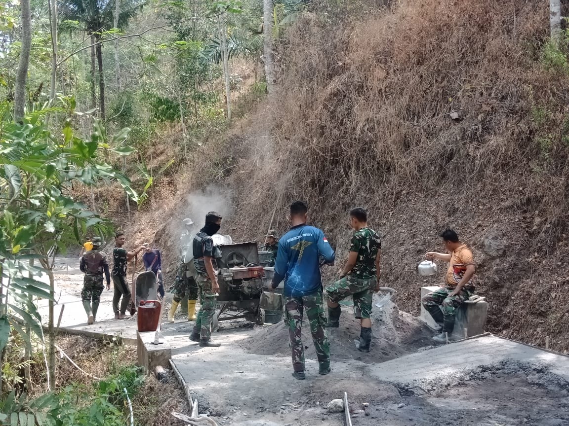 Selama kegiatan penataan jalan tersebut, dilaksanakan Satgas TMMD Reg 118 Kodim 0708/ Purworejo bersama warga setempat, kali ini kepolisian juga ikut bersama anggota Satgas bergotong royong untuk mempercepat proses Rabat Beton .