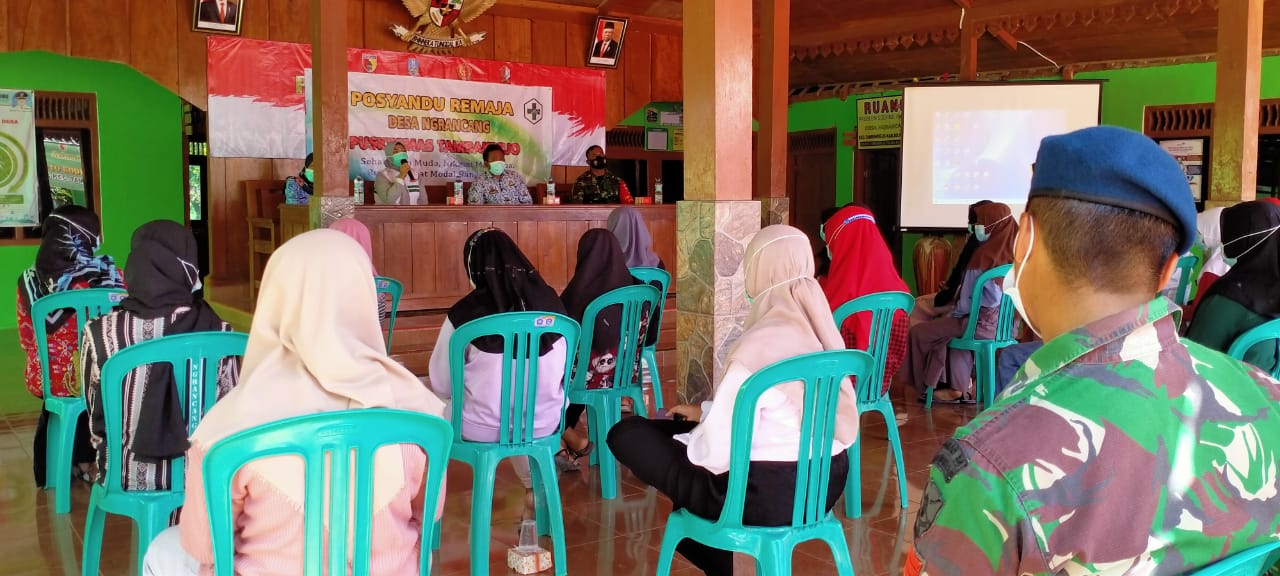 BOJONEGORO – Posyandu Remaja yang dilaksanakan Dinas Kesehatan (Dinkes) Pemkab Bojonegoro bersama TMMD (TNI Manunggal Membangun Desa) ke-110 tahun 2021 Kodim 0813 juga bertujuan meningkatkan Kesehatan Bagi para Remaja di Desa Ngrancang, Kecamatan Tambakrejo, Kabupaten Bojonegoro, Jawa Timur menyasar para remaja yang ada di Desa Setempat,Jum’at(19/03/2021).