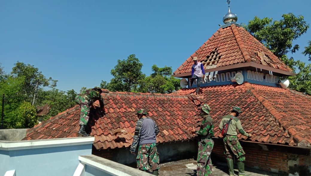 Sertu Sumarno mengatakan, di sela-sela kegiatan dirinya dan anggota satgas lain juga ikut bergotong royong rehab masjid progres penurunan genteng atau atap Masjid Baitul Muttaqin Desa Tamansari. Jumat (9/7/2021)