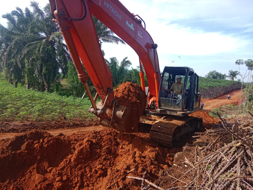 Pengerjaan ini dilakukan dengan mengerahkan alat berat seperti Ekskavator dan Grader. Ekskavator bekerja membersihkan lahan dan menggali badan jalan, terutama di lokasi yang masih berupa lahan perkebunan, sementara Grader meratakan permukaan tanah, membentuk badan jalan selebar 6 meter yang siap untuk tahap perkerasan berikutnya.