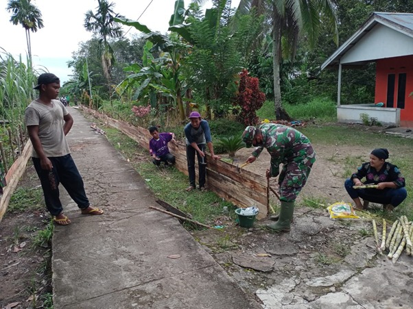 Seperti yang dilakukan Sertu Suryadi, anggota Koramil 1207-06/Sungai Ambawang di lokasi TMMD ke-111 Kodim Pontianak, dia dengan penuh kesungguhan membantu teguh warga Dusun Maju Jaya, Desa Kuala Mandor B, memasang papan pembatas pengecoran jalan.