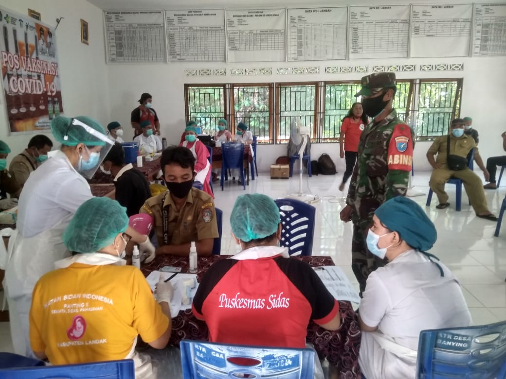 “Untuk pelaksanaan vaksinasi diadakan di Kantor Desa Banying sasarannya petugas pada pelayanan publik seperti perangkat desa, guru dan karyawan koperasi serta orang tua lanjut usia untuk dosis pertama, siang nanti setelah selesai tracing,” jelas Danramil.