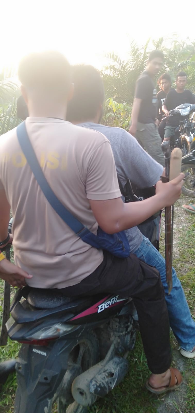 “Pelaku seluruhnya ada 4 orang dan satu di antaranya yaitu Meiledi, sudah kami tangkap tidak lama setelah kejadian, ketika yang bersangkutan keluar dari kebun sawit sambil membawa brondolan buah sawit. Peristiwa ini terjadi diduga karena para pelaku kepergok para korban ketika sedang melakukan aksi pencurian buah kelapa sawit milik H. Tahang, sementara para korban adalah penjaga daripada kebun tersebut. Kami masih akan terus mendalami kasus ini dan untuk pelaku lainnya yang belum tertangkap tetap akan kami kejar sampai dapat, untuk itu kepada para pelaku atau keluarganya kami imbau agar para pelaku menyerahkan diri atau diserahkan sebelum kami tangkap, karena hukum harus tetap ditegakkan dan untuk mempertanggungjawabkan perbuatannya,” tegas Morris.