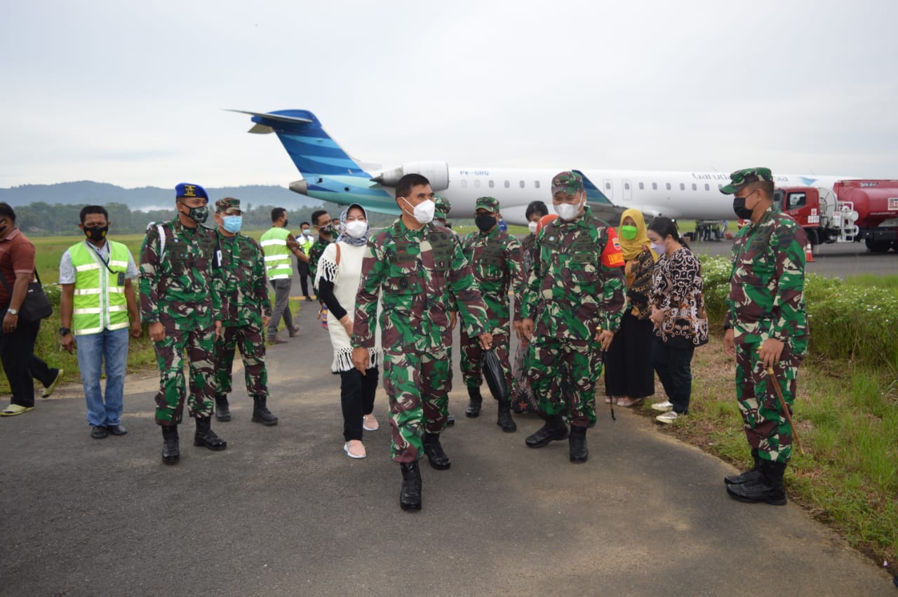 Dandim 0212/TS bersama Danrem 023/KS Kolonel Inf Febriel Buyung Sikumbang dan Kapoksahli Dam I/BB Brigjen TNI Junaedi sambut kedatangan Tim Wasev TNI AD Mayjen Eka Wiharsa di Bandara Dr.Ferdinand Lumban Tobing, Sibolga Tapanuli Tengah, Letkol Inf Rooy Chandra Sihombing, S.I.P Jum’at (2/7/2021), mengatakan tim Masev turun dari pesawat langsung saya menjemputnya selepas turun dari pesawat