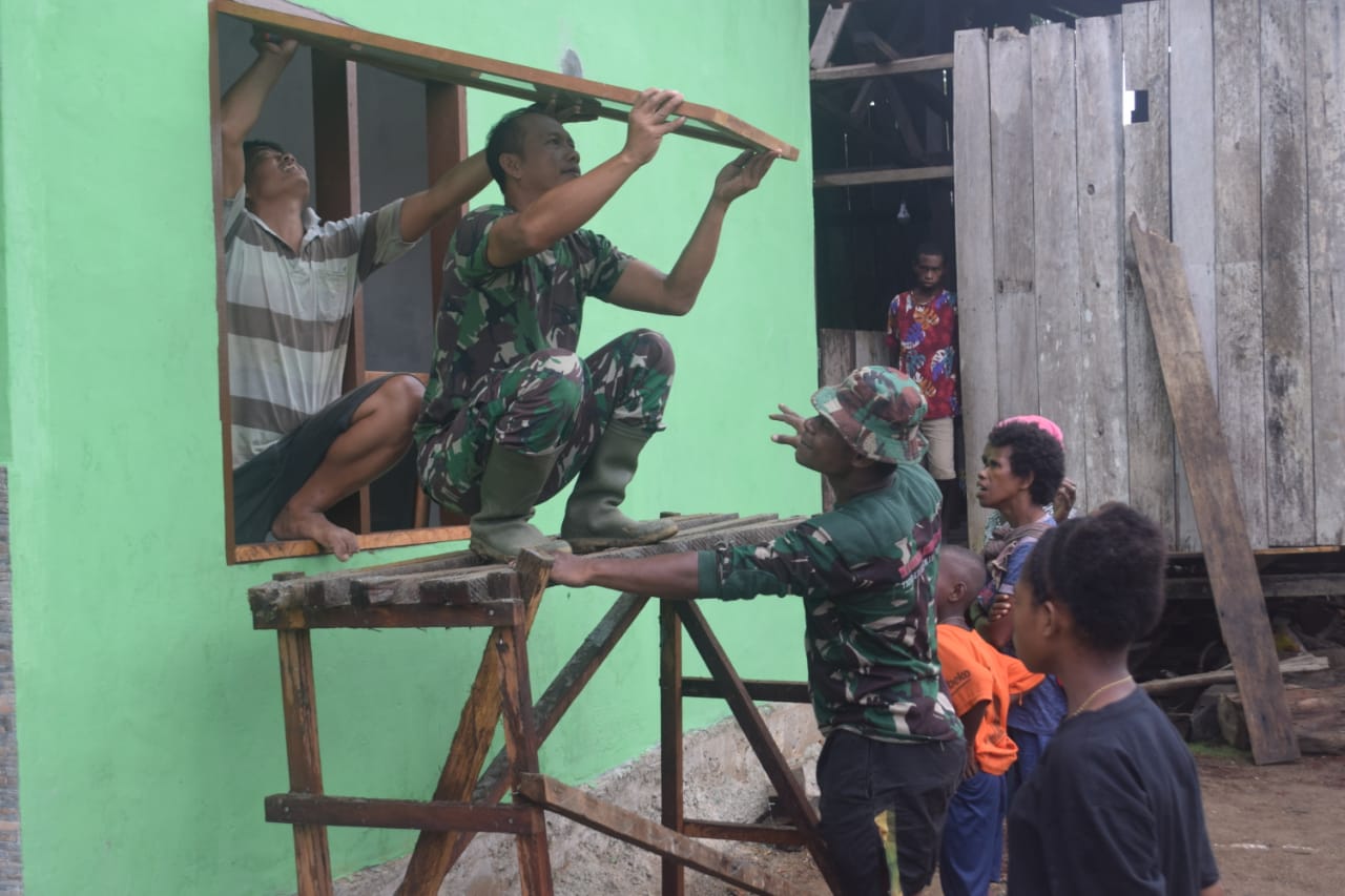 Sorong, Papua Barat – Bukan hanya mengecek kerja Personil Satgas, tetapi Komandan SSK TMMD Ke-110 Kodim 1802/Sorong Kapten Inf Joko Susanto langsung turun tangan untuk membantu pemasangan jendela rumah. Sabtu (20/03/2021)