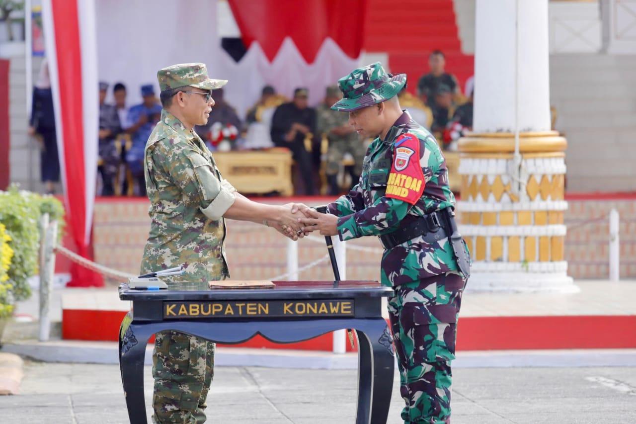 Konawe – Upacara Pembukaan TNI MANUNGGAL MEMBANGUN DESA (TMMD) 125 Kodim 1417/Kendari TA 2025 di Kab. Konawe telah dilaksanakan di Lapangan Upacara Kantor Bupati Konawe Jl. Inolobunggadue Kel. Puunaaha Kec. Unaaha Kab. Konawe, Rabu (23/7). Upacara ini dipimpin oleh H. Yusran Akbar.,ST (Bupati Konawe) dan dihadiri sekitar ± 450 orang peserta Upacara dan tamu undangan.