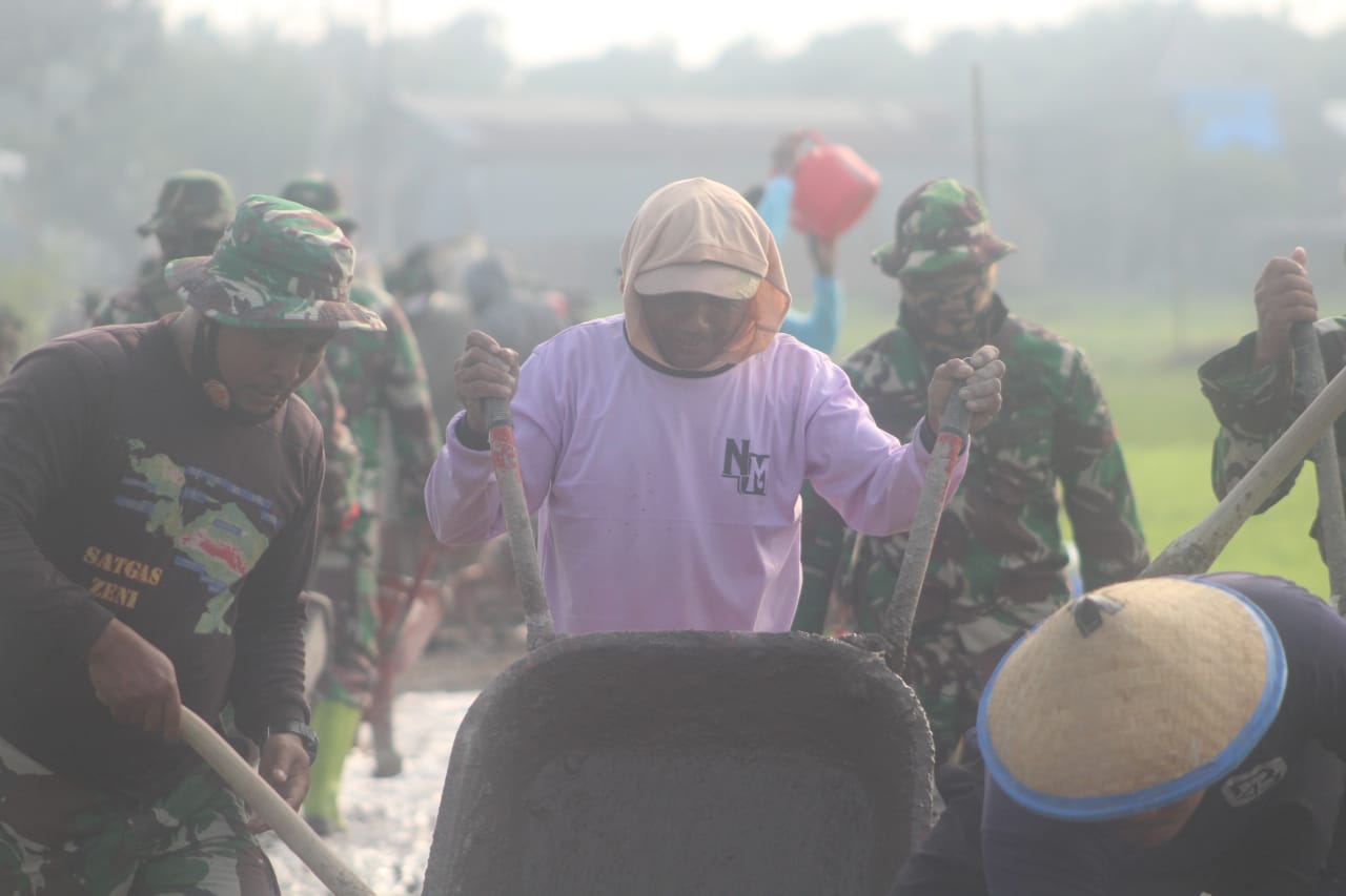 Diusia yang tidak muda lagi 62 tahun ia bergabung dengan tim betonisasi jalan yang setiap hari berkutat dengan adonan semen, pasir dan semen dilokasi pembangunan jalan.