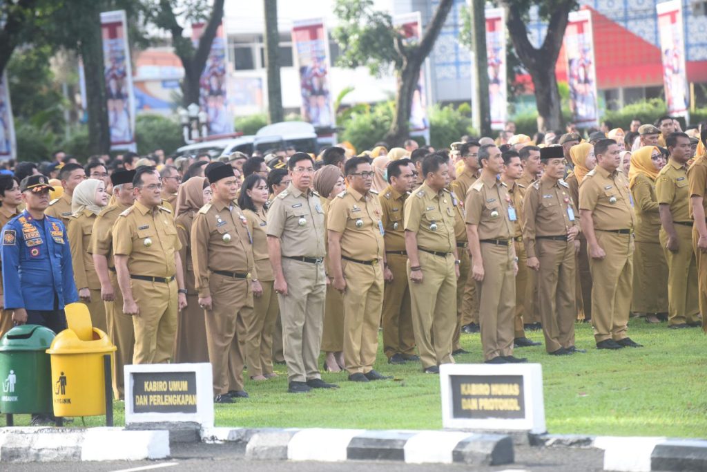 Apel gabungan ini juga dihadiri langsung dipimpin oleh Sekretaris Daerah (Sekda) Provinsi Sumsel Drs H Edward Candra MH, para Asisten, dan Para Pimpinan Organisasi Perangkat Daerah (OPD) serta seluruh ASN di lingkup Pemprov Sumsel.