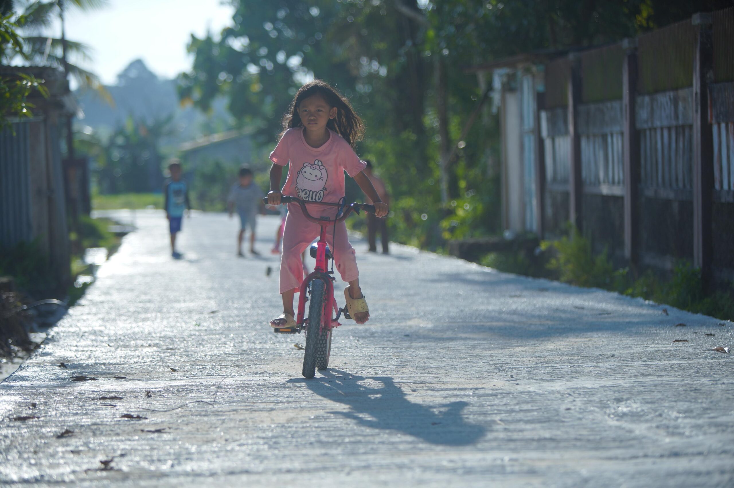 Kini, jalan yang sudah diperbaiki tak hanya memudahkan kendaraan berlalu-lalang, tetapi juga menjadi arena bermain yang aman bagi anak-anak desa.
