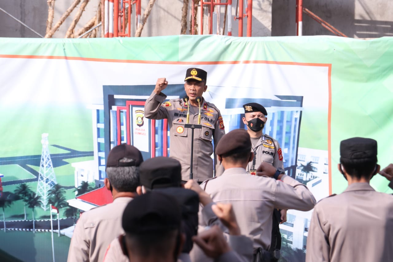 Kliksumatera.com, PALEMBANG- Kapolda Sumsel Irjen Pol Drs Toni Harmanto, MH diwakili Wakapolda Sumsel Brigjen Pol Rudi Setiawan Sik MH memimpin Apel Pagi, Senin (20/9/2021 bertempat di lapangan apel Mapolda Sumsel.