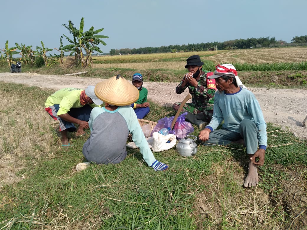Pati – Kesibukan dalam melaksanakan pekerjaan program TMMD, tidak menjadi penghalang bagi Satgas TMMD Reguler ke-111 Kodim Pati dalam menjalin keakraban dengan masyarakat, di lokasi sasaran TMMD. Terlihat Serda Sukarji bersama warga sedang istirahat sembari makan jajanan seadanya serta minum es legen, minuman khas warga setempat, Minggu (13/6/2021).