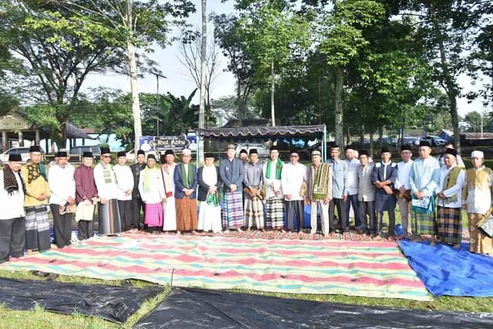 Kliksumatera.com, PAGARALAM- Walikota Pagaralam Alpian Maskoni bersama Ketua TP KK Kota Pagaralam Rachma Hareni Noor Alpian, melaksanakan Sholat Idul Adha 1444 Hijriyah, di Lapangan Terminal Pagaralam Selatan, Kamis (28/06/2023).