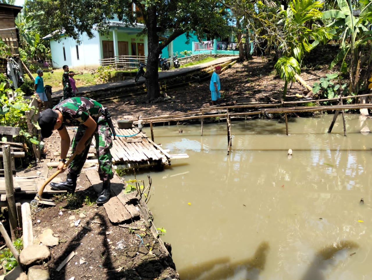 EMPAT LAWANG – Beberapa anggota Tentara Nasional Indonesia (TNI) Manunggal Masuk Desa (TMMD) ke 122 Kodim 0405/Lahat, dibantu warga Desa Lampar Baru, Kecamatan Talang Padang, Kabupaten Empat Lawang meninjau sekaligus membersihkan lingkungan sekitar kolam ikan yang akan dijadikan budidaya Nila.
