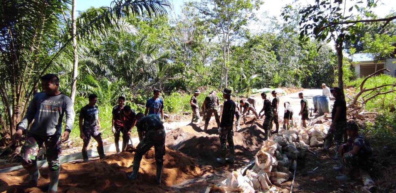 BENGKAYANG – Anggota Satgas TMMD ke-111 Kodim 1202/Singkawang bersama warga tidak mengenal lelah terus berpacu dengan waktu bahu membahu guna mempercepat pembangunan di sasaran fisik. Pembangunan jalan rabat beton itu terus dikebut pekerjaannya.