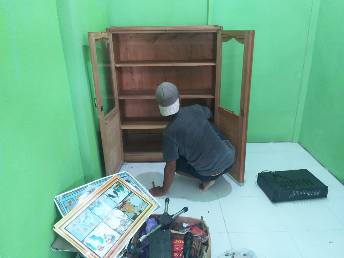 Oleh karena itu pada Selasa (30/3/2021), salah Seorang warga Desa Saka Lagun, kecamatan Pulau petak, kabupaten Kapuas melaksanakan penataan ruangan mushola seperti, meletakkan barang elektronik, yang merupakan alat yang digunakan untuk keperluan beribadah warga.