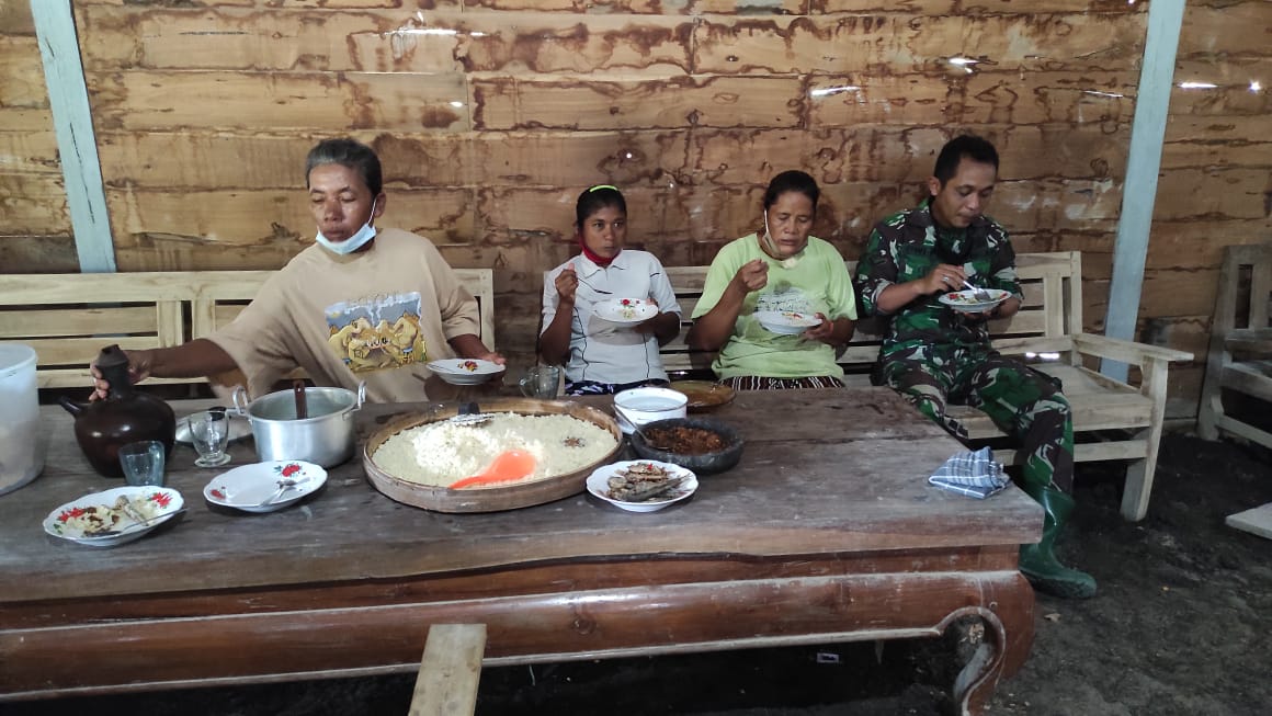 Serda Dwi menjelaskan, di saat istirahat siang, antara Satgas TMMD 110 dan masyarakat, mereka terlihat rukun dan akrab. Suasana yang begitu nyaman ditunjukkan prajurit yang mengikuti Satgas TMMD Ke-110 Kodim 0813/Bojonegoro yang sedang menikmati Istirahat Makan siang bersama di rumah Ibu Sunarni (63), Senin (01/03/2021).