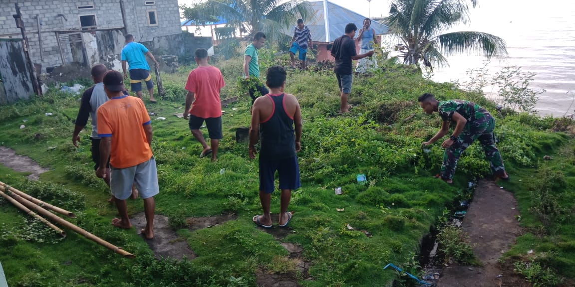 Sejumlah warga ikut kerja bakti bersama anggota Satgas TMMD, di Kelurahan Figur, Kecamatan Motu, Kota Ternate. Kamis (24/06/21).