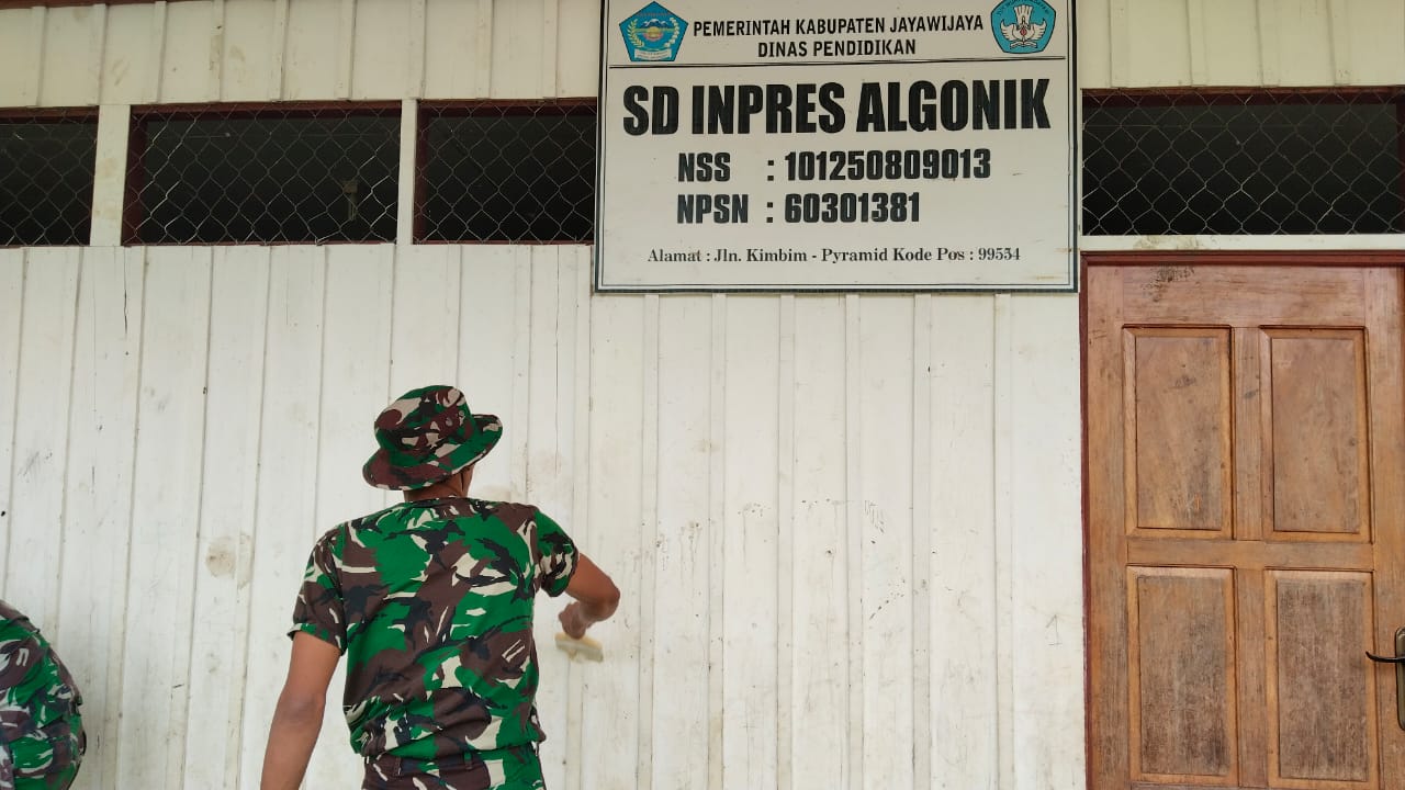 Wamena – Satgas TNI Manunggal Membangun Desa (TMMD) ke-126 Kodim 1702/Jayawijaya melaksanakan kegiatan pengecatan di SD Inpres Algonik, Distrik Pyramid, Kabupaten Jayawijaya. Kegiatan ini merupakan program tambahan yang mencerminkan kepedulian Kodim 1702/Jayawijaya terhadap dunia pendidikan, khususnya di wilayah pedalaman Papua Pegunungan. Senin (13/10/2025).