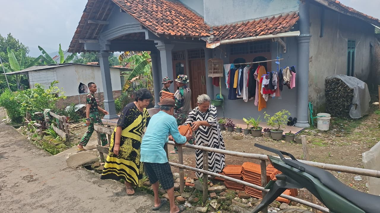 Salah satu warga, Ibu Rokhiah (45), tampak cekatan membantu mengangkat genteng dan material bangunan lainnya. Baginya, membantu tetangga adalah kewajiban moral, apalagi dilakukan bersama bapak-bapak TNI.