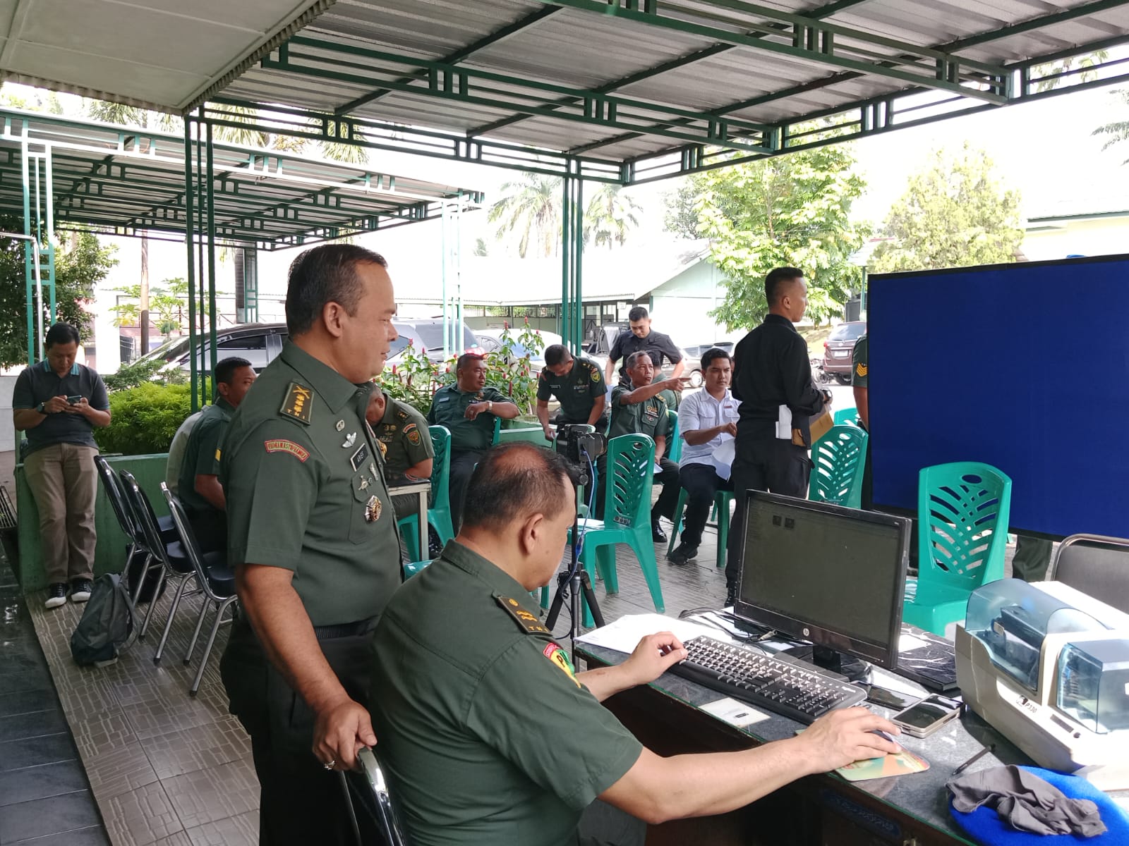 Mobil Pelayanan SIM TNI Keliling milik Pomdam II/Swj, menyambangi Makorem 044/Gapo untuk memfasilitasi kemudahan pengurusan SIM TNI.
